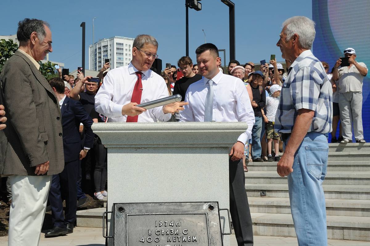А затем состоялось долгожданное событие – вскрытие «Капсулы времени» с посланием потомкам, которая была заложена 50 лет назад, когда Уфа отмечала свое 400-летие.
