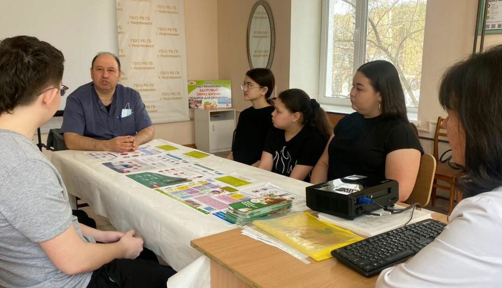 Пятничным утром прошла беседа за круглым столом для подростков «Профилактика асоциального поведения несовершеннолетних». Подростки встретились за круглым столом с врачом-наркологом наркологического диспансера городской больницы Камилем Ринатовичем Юсуповым и врачом-педиатром Центра здоровья Алифой Тимергалиевной Юсуповой.