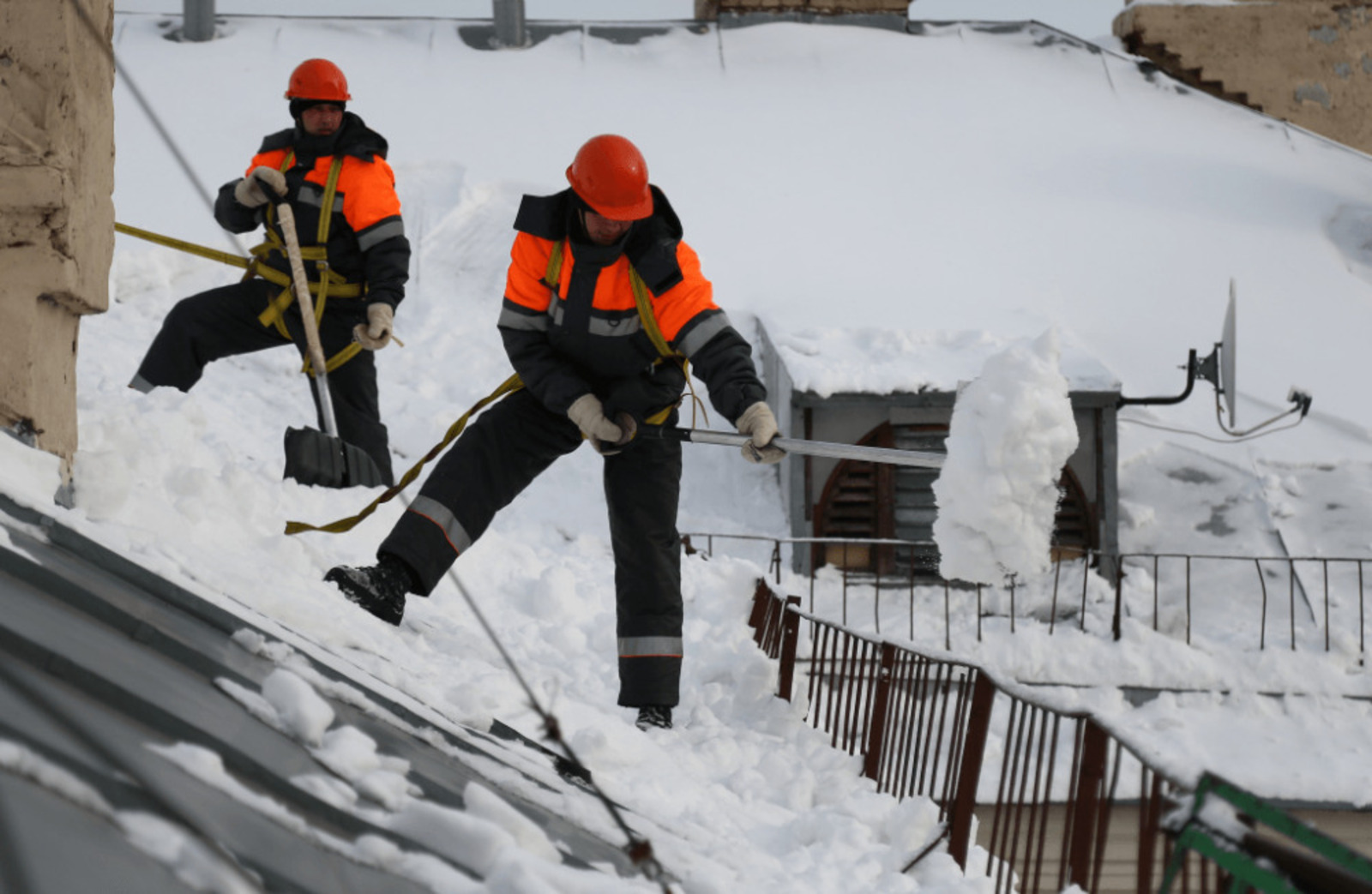 Одновременно с осмотром придомовых территорий производится обследование крыш и козырьков входных групп подъездов на предмет обеспечения своевременной очистки от снежных шапок и наледи. В результате на крышах и балконах многоквартирных домов выявлено наличие снежных и ледяных масс, представляющих угрозу обрушения на 44 объектах жилищного фонда.